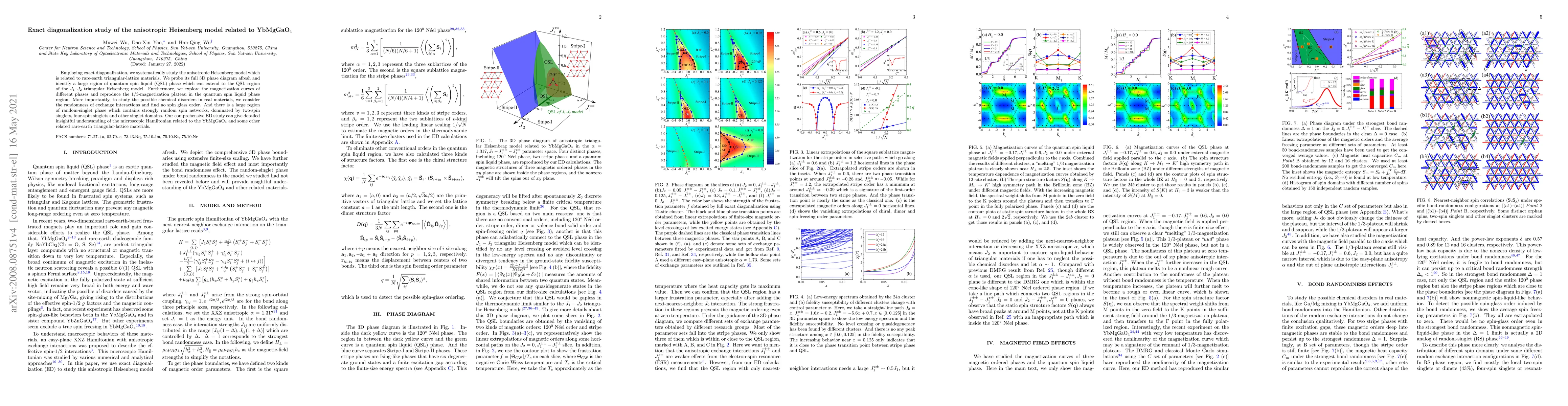 Employing exact diagonalization, we systematically study the anisotropic Heisenberg model which is related to rare-earth triangular-lattice materials. We probe its full 3D phase diagram afresh and identify a large region of quantum spin liquid (QSL) phase which can extend to the QSL region of the $J_1$--$J_2$ triangular Heisenberg model. Furthermore, we explore the magnetization curves of different phases and reproduce the 1/3-magnetization plateau in the quantum spin liquid phase region. More importantly, to study the possible chemical disorders in real materials, we consider the randomness of exchange interactions and find no spin glass order. And there is a large region of random-singlet phase which contains strongly random spin networks, dominated by two-spin singlets, four-spin singlets and other singlet domains. Our comprehensive ED study can give detailed insightful understanding of the microscopic Hamiltonian related to the YbMgGaO$_4$ and some other related rare-earth triangular-lattice materials.