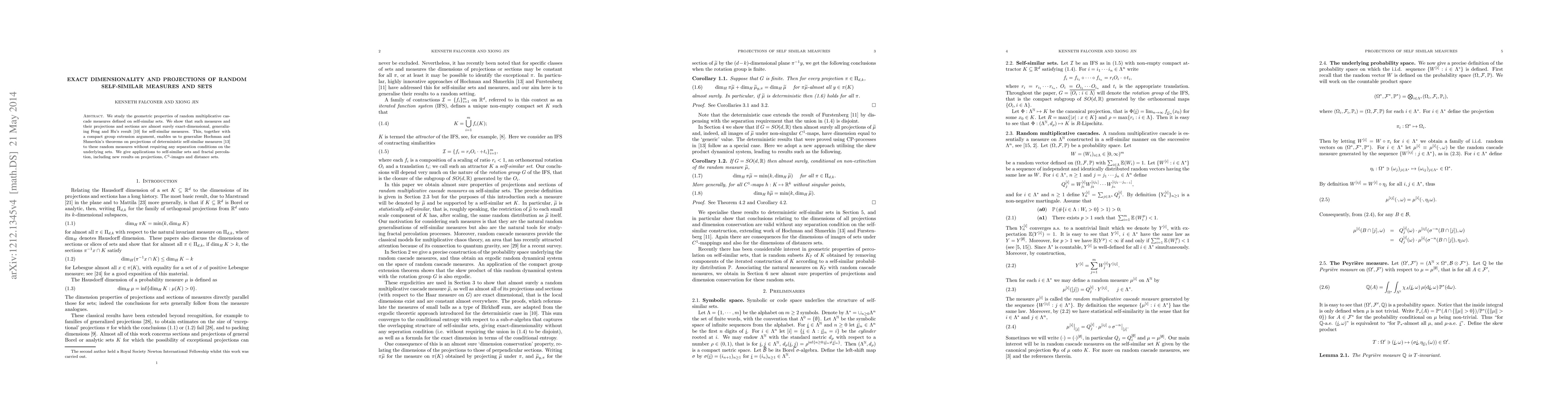This paper investigates the dimensionality and projections of random multiplicative cascade measures on self-similar sets, proving almost sure exact dimensionality and extending prior results to random measures without separation conditions. Applications include new findings on projections, $C^1$-images, and distance sets in self-similar sets and fractal percolation.