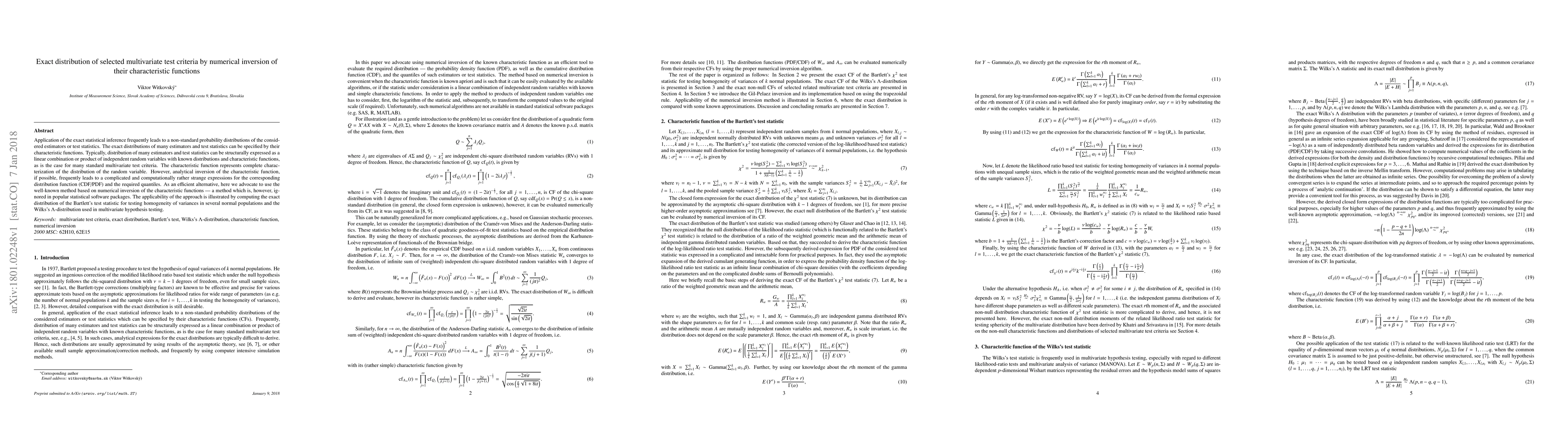 Application of the exact statistical inference frequently leads to a non-standard probability distributions of the considered estimators or test statistics. The exact distributions of many estimators and test statistics can be specified by their characteristic functions. Typically, distribution of many estimators and test statistics can be structurally expressed as a linear combination or product of independent random variables with known distributions and characteristic functions, as is the case for many standard multivariate test criteria. The characteristic function represents complete characterization of the distribution of the random variable. However, analytical inversion of the characteristic function, if possible, frequently leads to a complicated and computationally rather strange expressions for the corresponding distribution function (CDF/PDF) and the required quantiles. As an efficient alternative, here we advocate to use the well-known method based on numerical inversion of the characteristic functions --- a method which is, however, ignored in popular statistical software packages. The applicability of the approach is illustrated by computing the exact distribution of the Bartlett's test statistic for testing homogeneity of variances in several normal populations and the Wilks's $\Lambda$-distribution used in multivariate hypothesis testing.