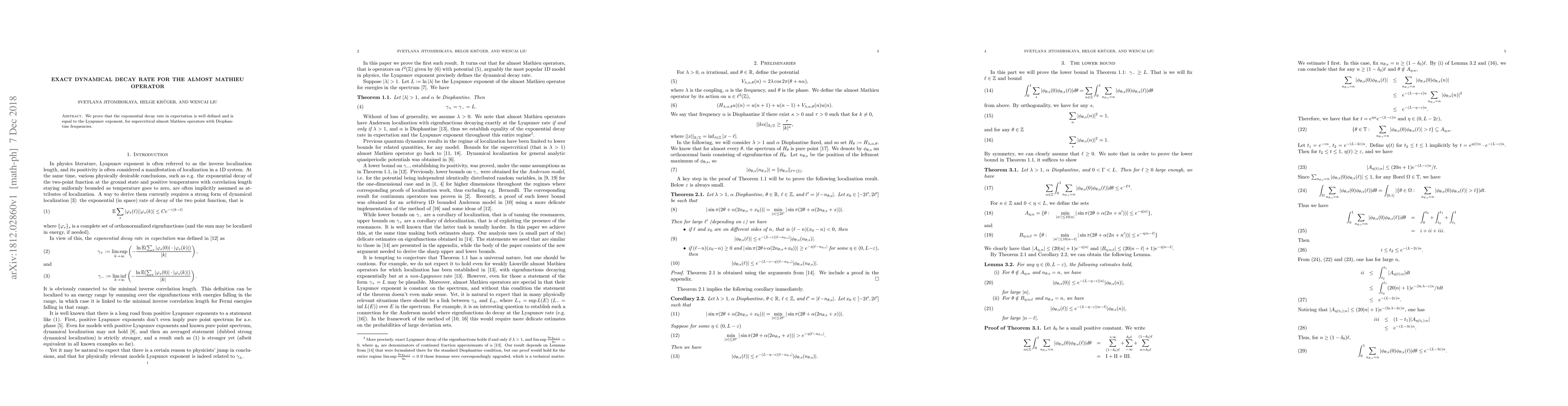 We prove that the exponential decay rate in expectation is well defined and is equal to the Lyapunov exponent, for supercritical almost Mathieu operators with Diophantine frequencies.
