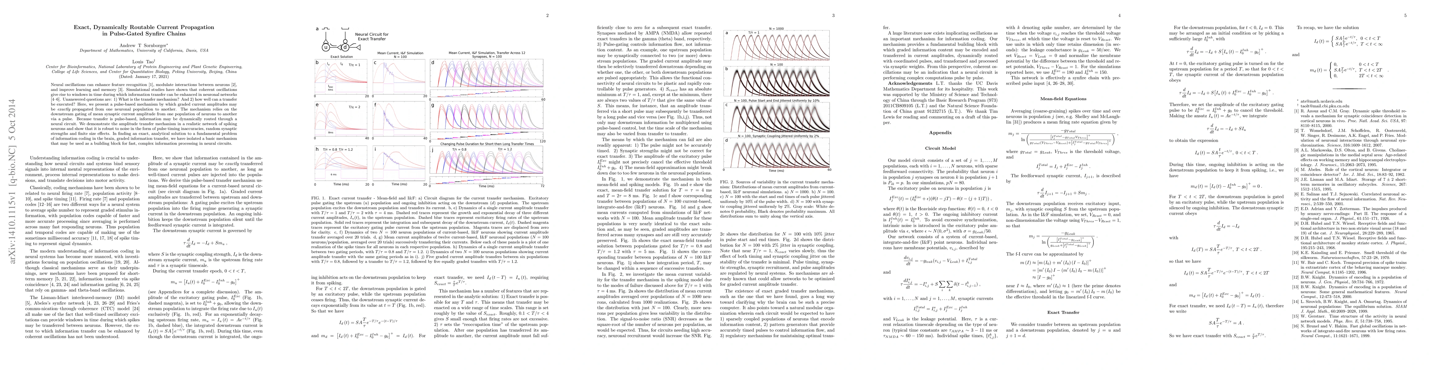 This paper proposes a pulse-gated mechanism for exact, dynamically routable propagation of current amplitudes in neuronal networks, demonstrating robustness to noise and providing a foundational approach for complex information processing in the brain. The method enables precise information transfer through neural circuits, offering a potential building block for advanced neural computations.