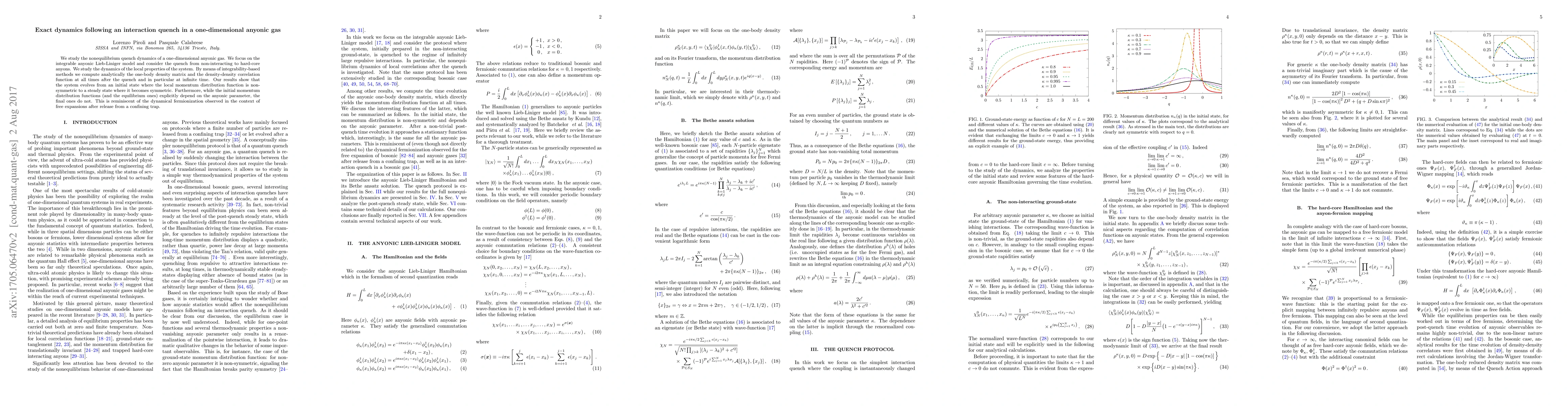 This paper investigates the exact dynamics of a one-dimensional anyonic gas following an interaction quench in the integrable Lieb-Liniger model. Analytical methods reveal that the system transitions from an asymmetric initial momentum distribution to a symmetric final state, independent of the anyonic parameter, akin to dynamical fermionization.