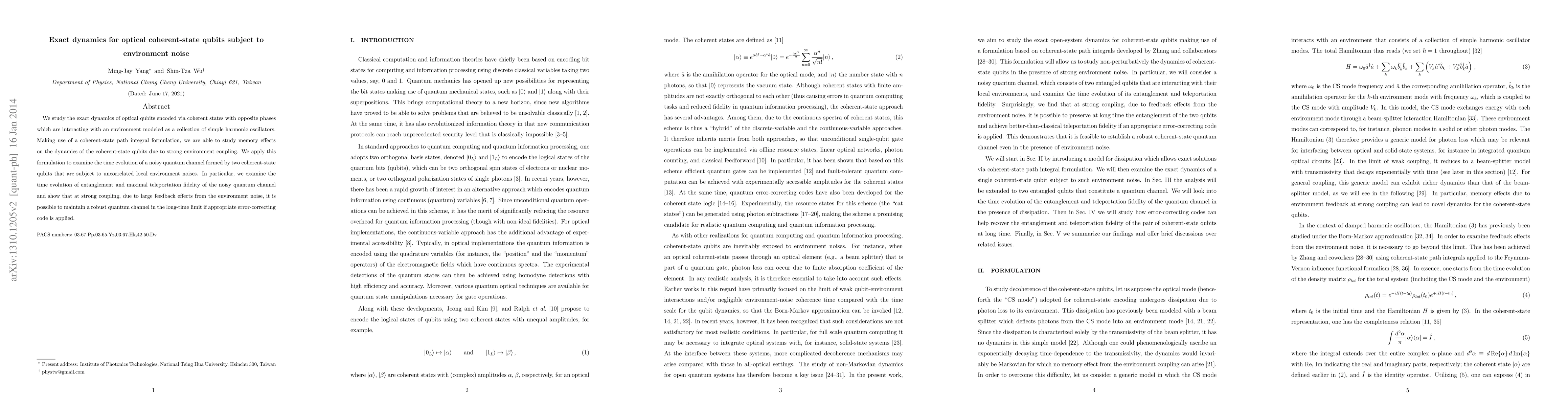 This paper investigates the exact dynamics of optical coherent-state qubits interacting with an environment modeled as simple harmonic oscillators, focusing on memory effects and strong environment coupling. It demonstrates that robust quantum channels can be maintained over time through error-correcting codes despite environment noise.