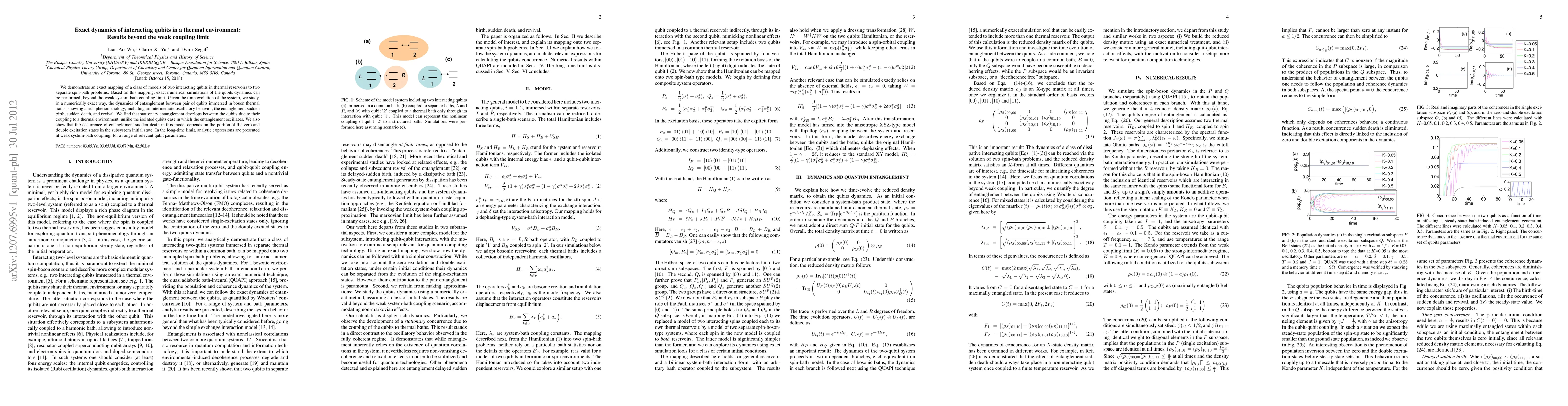 This paper presents an exact numerical simulation method for the dynamics of two interacting qubits in thermal environments, beyond the weak coupling limit, revealing rich entanglement phenomena such as sudden birth, death, and revival. It shows that stationary entanglement can develop due to thermal environment coupling, unlike isolated qubits.