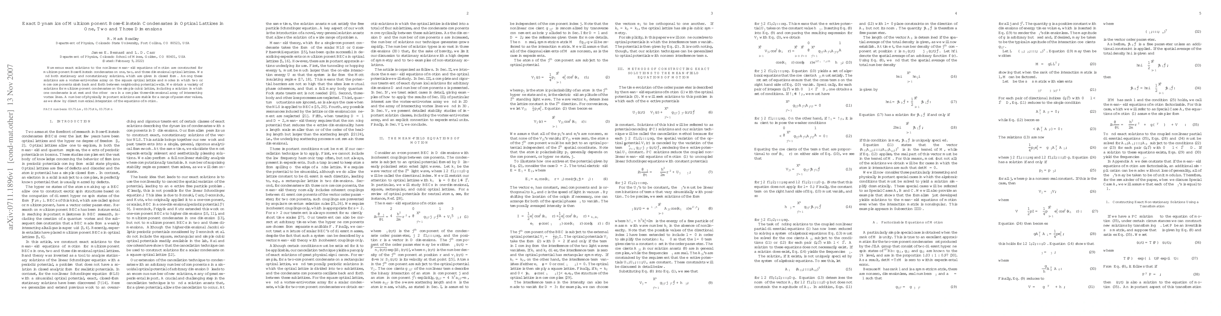 This paper constructs exact solutions for the dynamics of multicomponent Bose-Einstein condensates in optical lattices across one, two, and three dimensions, revealing stationary and nonstationary behaviors, including vortex-anti-vortex arrays and sloshing modes, with several solutions shown to be stable over parameter ranges.