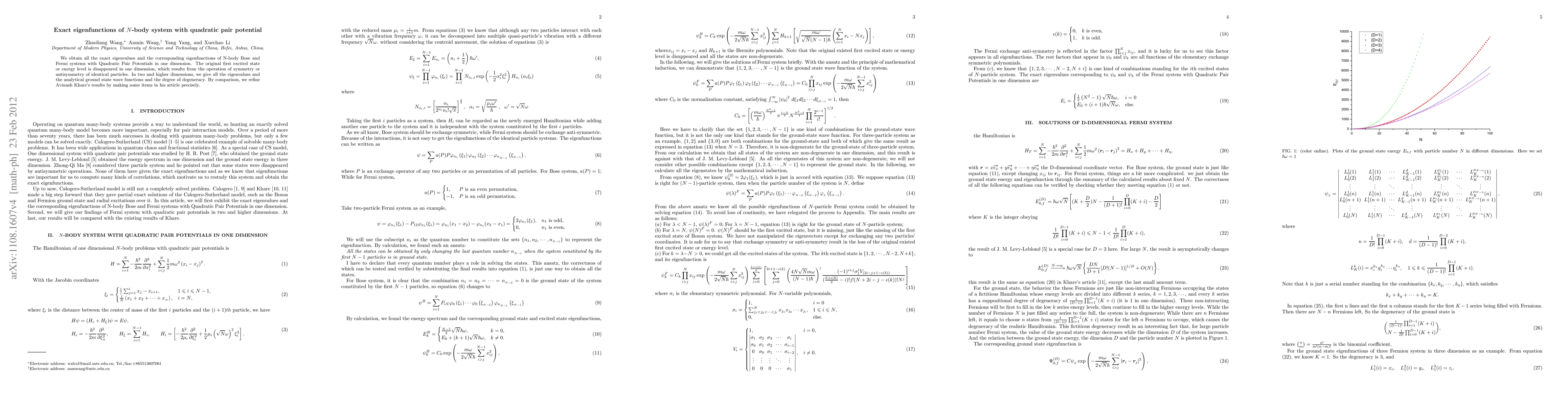 Researchers solved the quantum mechanics problem of a system with quadratic pair potential in N-body systems, finding exact eigenvalues and wave functions for one, two, and higher dimensions.