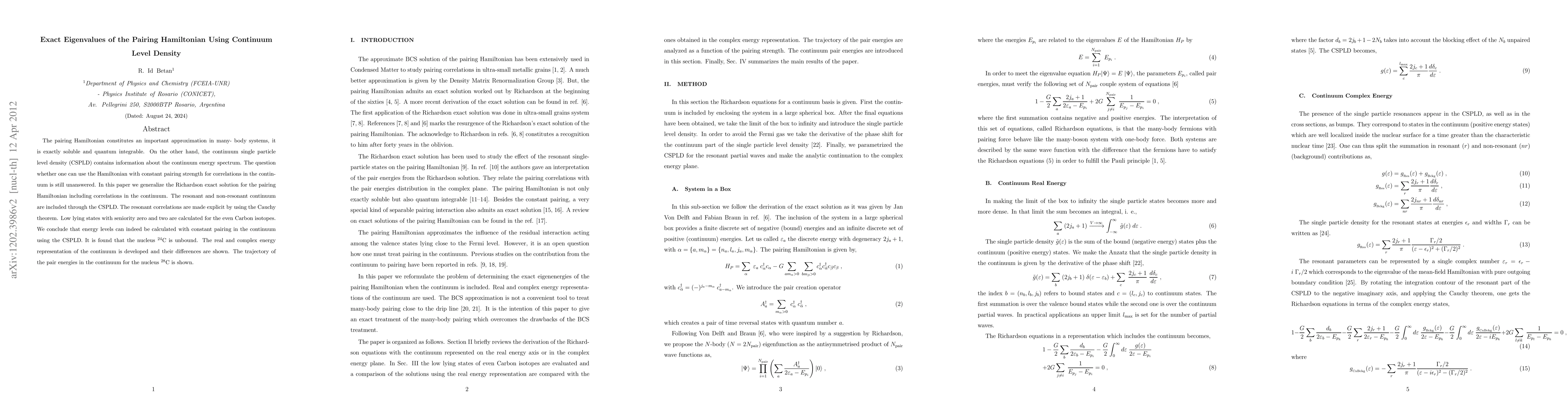 The research generalizes the Richardson exact solution for the pairing Hamiltonian to include correlations in the continuum using the Continuum Single Particle Level Density (CSPLD).