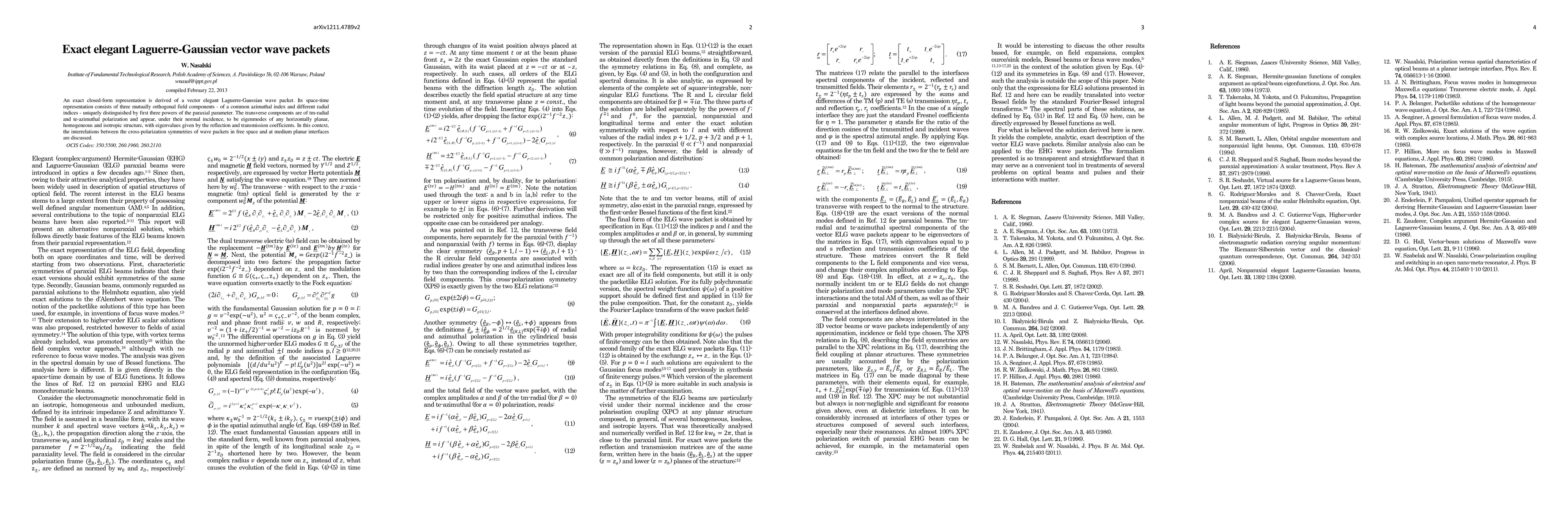 Researchers derive an exact closed-form representation of vector elegant Laguerre-Gaussian wave packets, showing they can exhibit eigenmode properties at planar interfaces, with implications for understanding cross-polarization symmetries in free space and media.