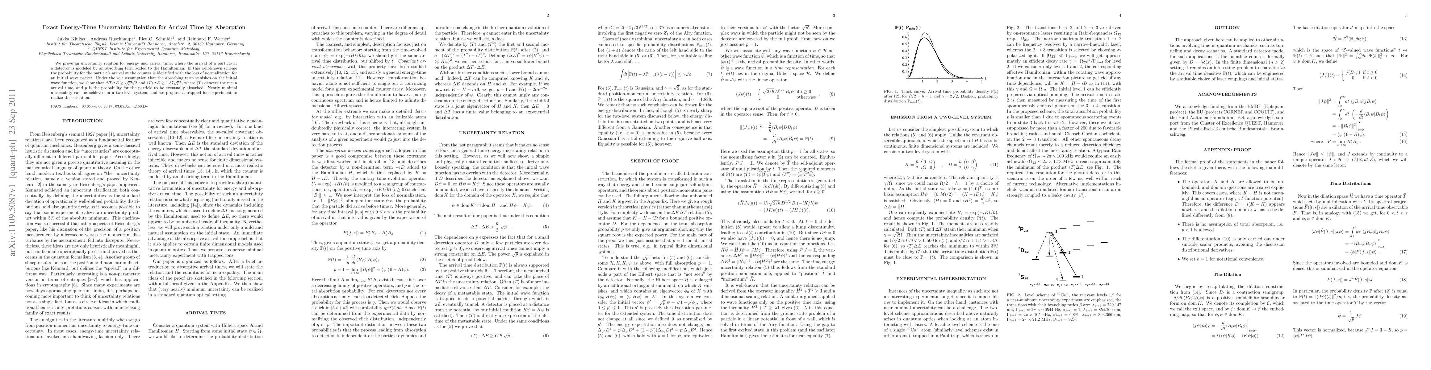 A new uncertainty relation is proven for energy and arrival time in a system with absorption, showing that energy and time are fundamentally linked and cannot be precisely known simultaneously.