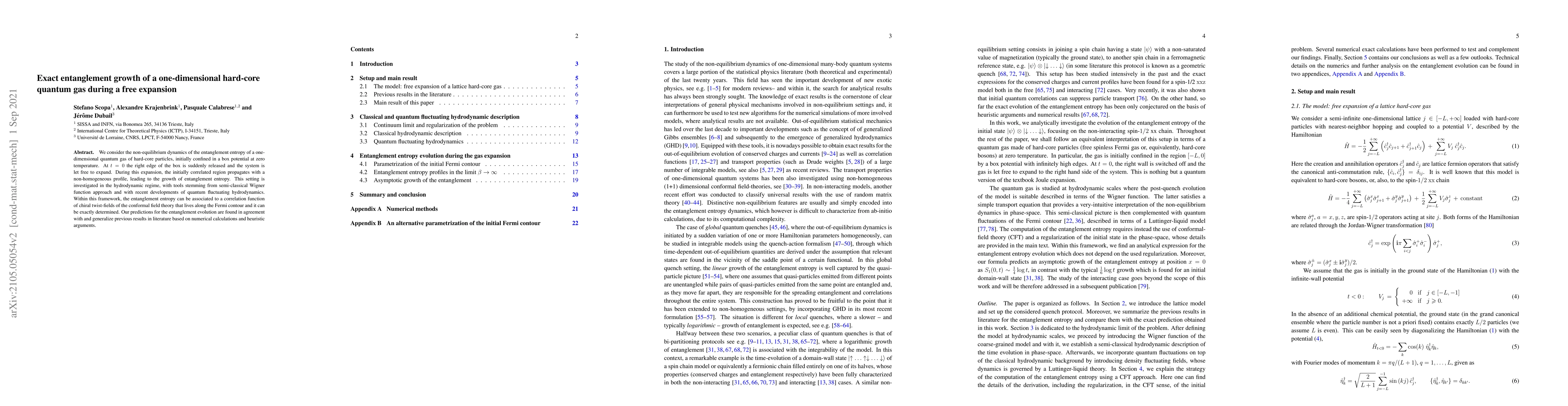This research investigates the expansion dynamics of a one-dimensional hard-core quantum gas, focusing on entanglement entropy growth. Utilizing semi-classical Wigner function methods and quantum fluctuating hydrodynamics, the study reveals an exact formula for entanglement entropy, associating it with chiral twist-fields. The findings align with and extend previous numerical and heuristic results.