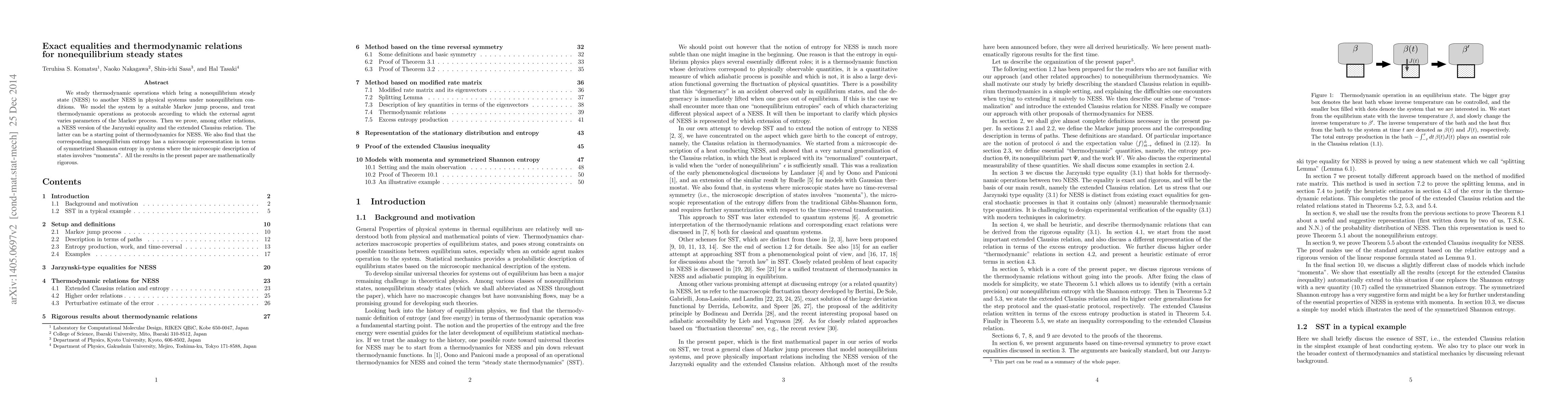 This paper rigorously explores thermodynamic operations transforming nonequilibrium steady states (NESS) into other NESS in physical systems, proving a NESS version of the Jarzynski equality and the extended Clausius relation, and establishing a microscopic representation of nonequilibrium entropy in terms of symmetrized Shannon entropy.