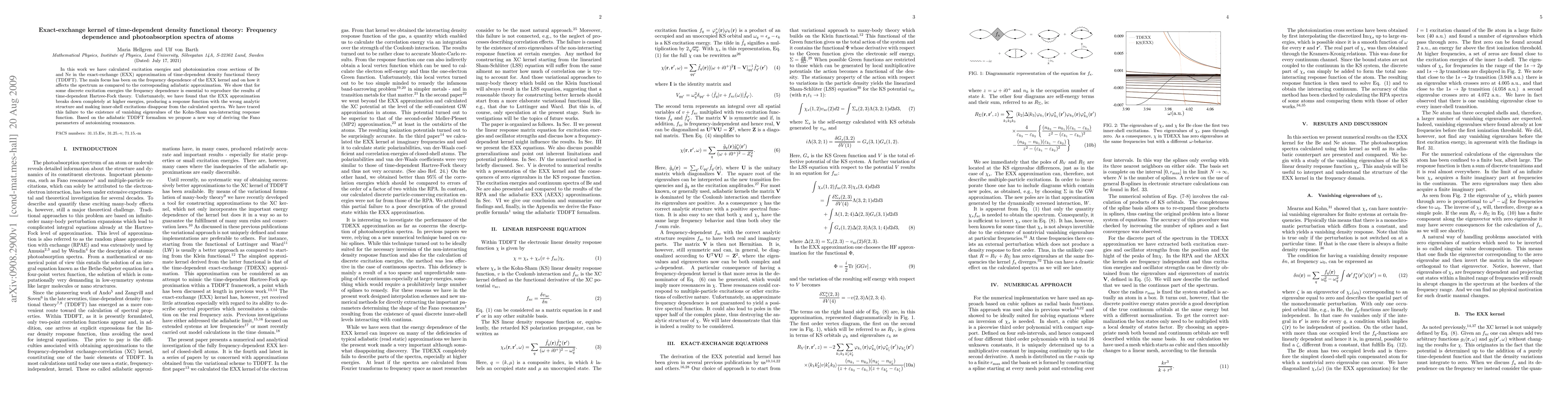 This paper investigates the exact-exchange kernel in time-dependent density functional theory (TDDFT) for Be and Ne, highlighting its frequency dependence and its impact on photoabsorption spectra. The study reveals that while the frequency dependence is crucial for some excitation energies, the exact-exchange approximation fails at higher energies, leading to incorrect spectral results.