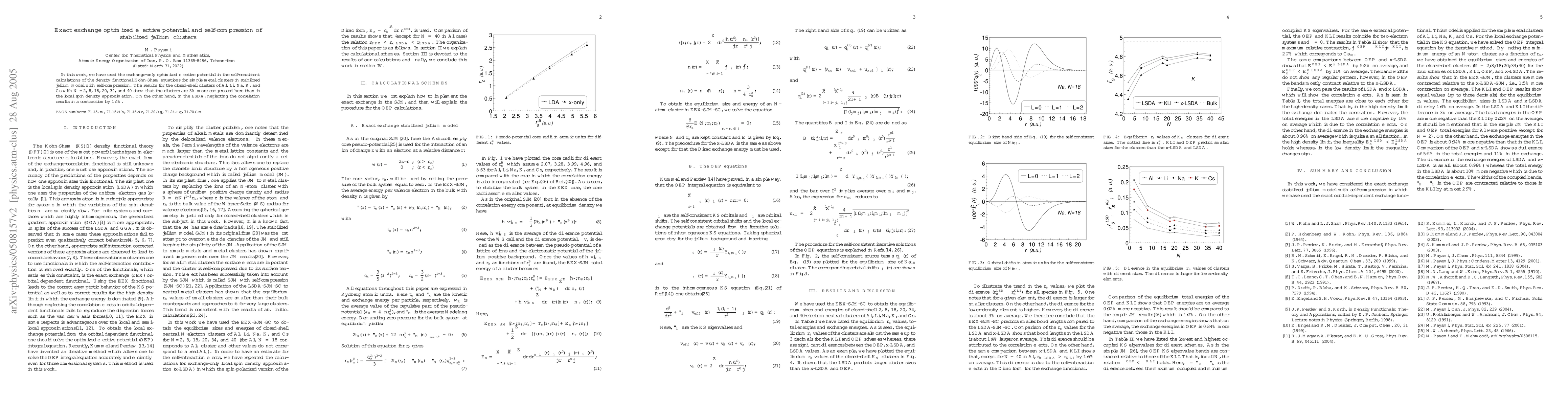 In this work, we have used the exchange-only optimized effective potential in the self-consistent calculations of the density functional Kohn-Sham equations for simple metal clusters in stabilized jellium model with self-compression. The results for the closed-shell clusters of Al, Li, Na, K, and Cs with $N=$2, 8, 18, 20, 34, and 40 show that the clusters are 3% more compressed here than in the local spin density approximation. On the other hand, in the LSDA, neglecting the correlation results in a contraction by 1.4%.