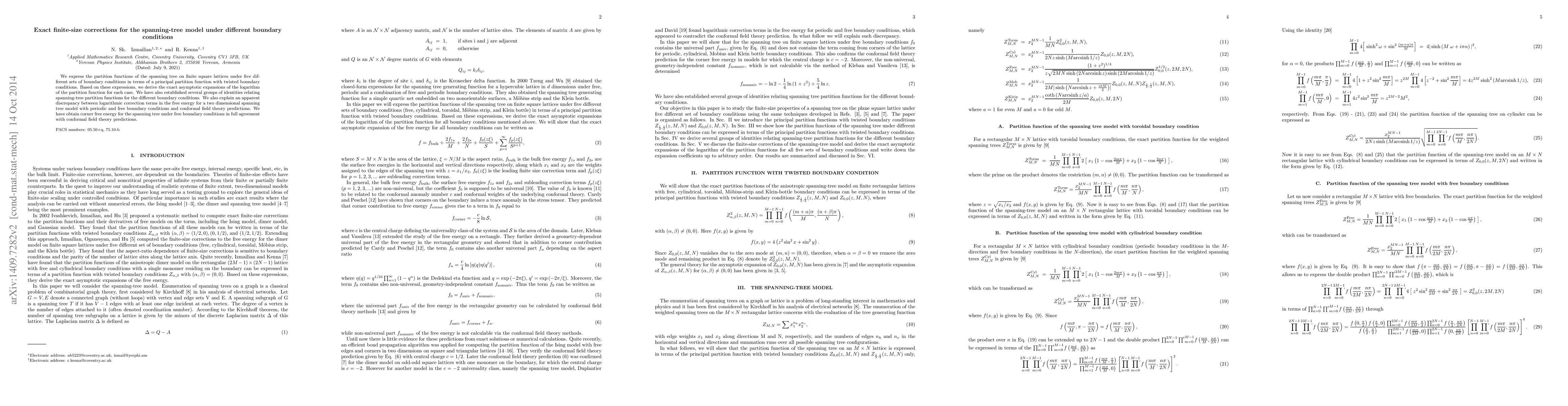 This paper derives exact finite-size corrections for the spanning-tree model on finite square lattices under five boundary conditions, establishing identities between them and resolving discrepancies in logarithmic correction terms. It also confirms the corner free energy under free boundary conditions aligns with conformal field theory predictions.