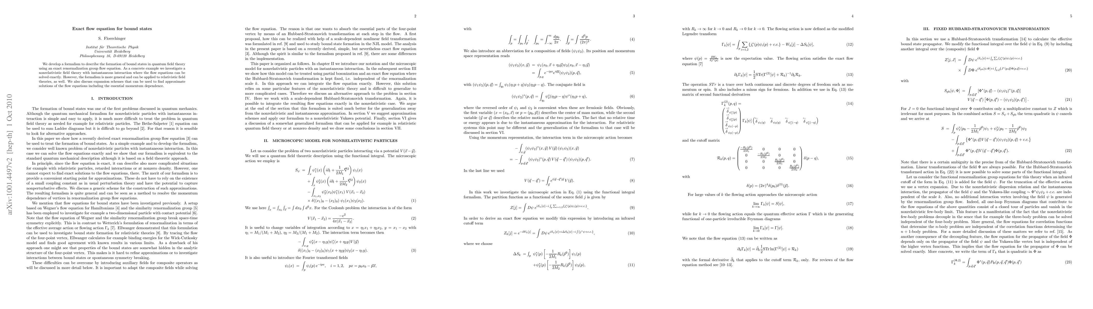 This paper introduces an exact renormalization group flow equation to describe the formation of bound states in quantum field theory, exemplified by a nonrelativistic field theory with instantaneous interactions. The formalism is general and applicable to relativistic theories, with discussion on expansion schemes for approximate solutions.