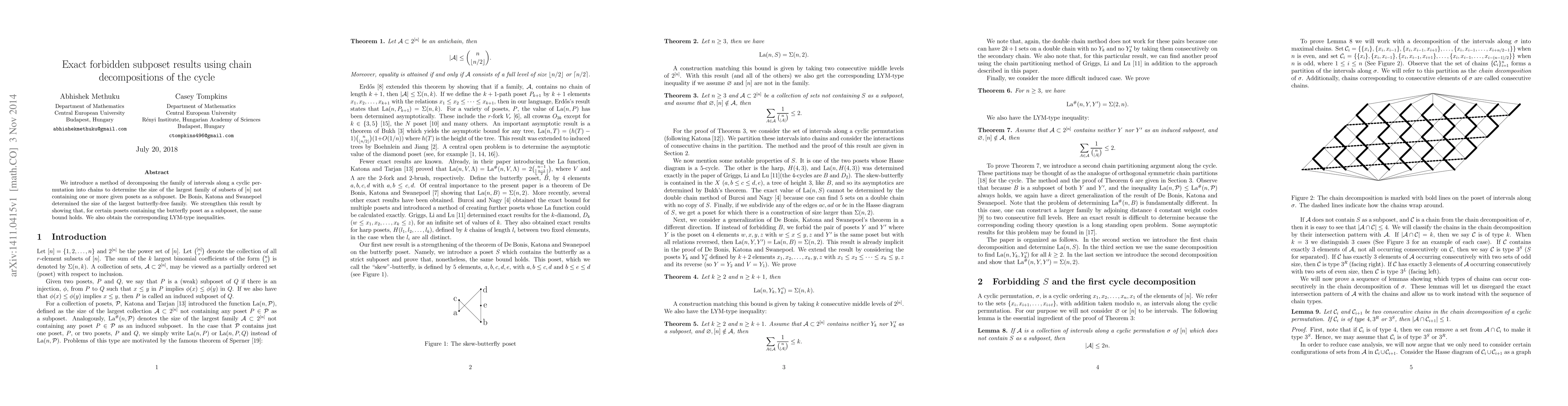 We introduce a method of decomposing the family of intervals along a cyclic permutation into chains to determine the size of the largest family of subsets of $[n]:= \{1,2,...,n\}$ not containing one or more given posets as a subposet. De Bonis, Katona and Swanepoel determined the size of the largest butterfly-free family. We strengthen this result by showing that, for certain posets containing the butterfly poset as a subposet, the same bound holds. We also obtain the corresponding LYM-type inequalities.