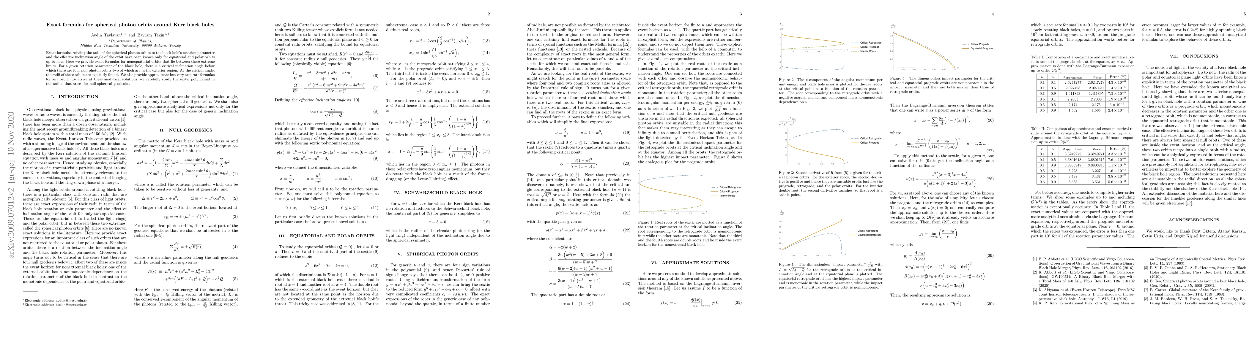 Researchers have developed exact formulas for spherical photon orbits around Kerr black holes in non-equatorial regions, providing insight into the critical inclination angle and radii of null photon orbits.