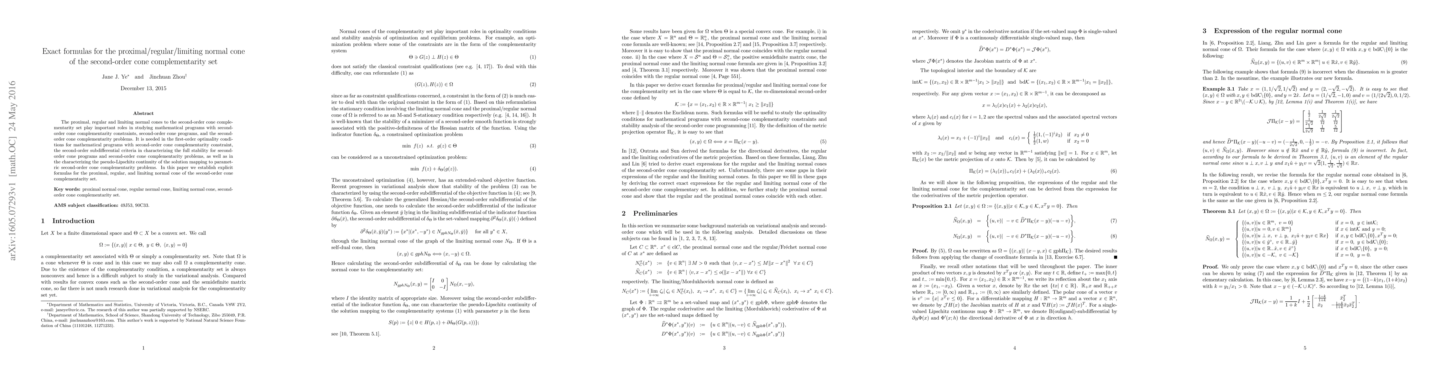 This paper derives exact formulas for the proximal, regular, and limiting normal cones to the second-order cone complementarity set, essential for analyzing mathematical programs with second-order cone constraints, second-order cone programs, and their stability and continuity properties.