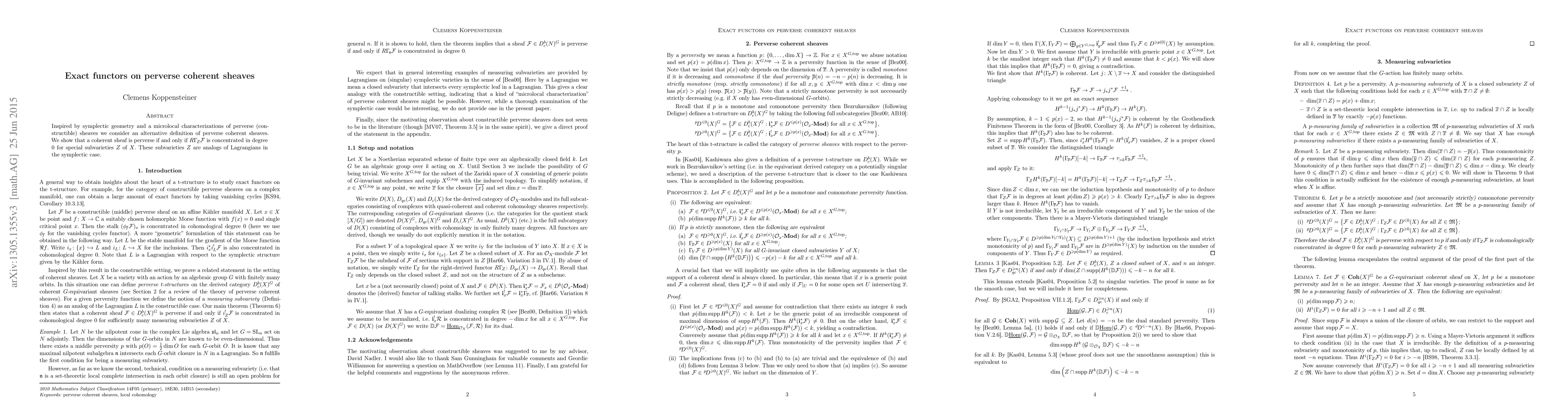 This paper redefines perverse coherent sheaves using microlocal characteristics inspired by symplectic geometry, proving that a sheaf is perverse if its restriction to special subvarieties (analogous to Lagrangians) is concentrated in degree 0.