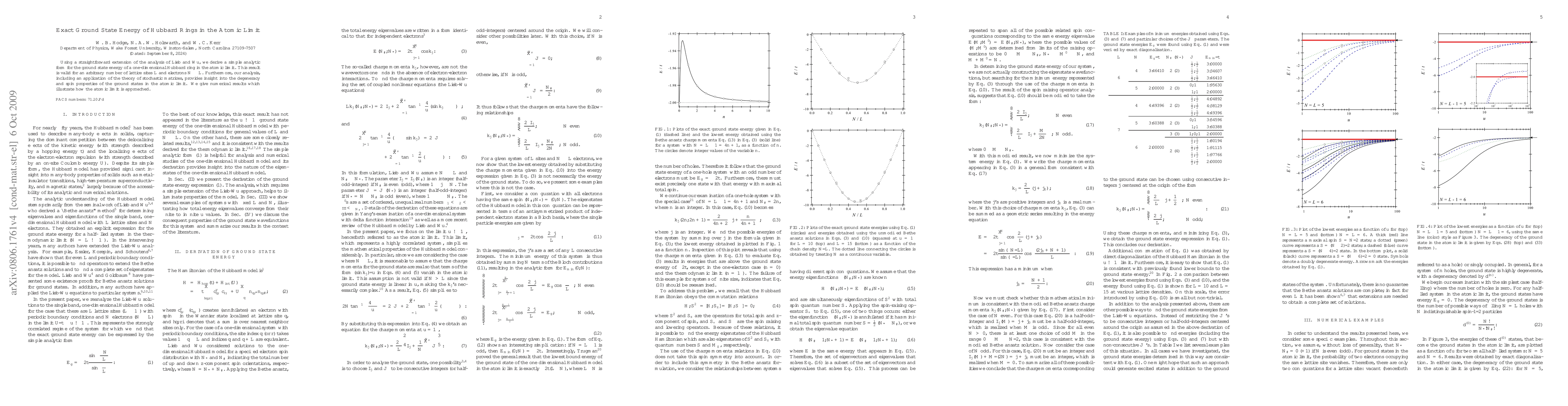 Using a straightforward extension of the analysis of Lieb and Wu, we derive a simple analytic form for the ground state energy of a one-dimensional Hubbard ring in the atomic limit. This result is valid for an \textit{arbitrary} number of lattice sites $L$ and electrons $N \leq L$. Furthermore, our analysis, including an application of the theory of stochastic matrices, provides insight into the degeneracy and spin properties of the ground states in the atomic limit. We give numerical results which illustrate how the atomic limit is approached.