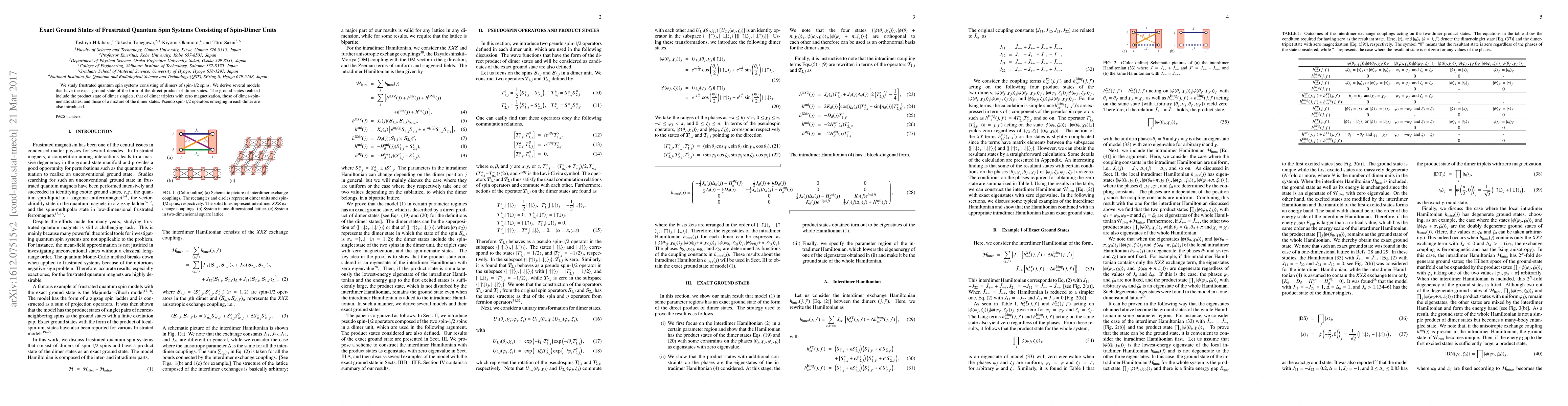 This paper investigates frustrated quantum spin systems made up of spin-1/2 spin-dimer units, deriving models with exact ground states that are direct products of dimer states, including singlets, triplets, spin-nematic states, and mixed dimer states. Pseudo spin-1/2 operators are introduced to describe these dimer states.