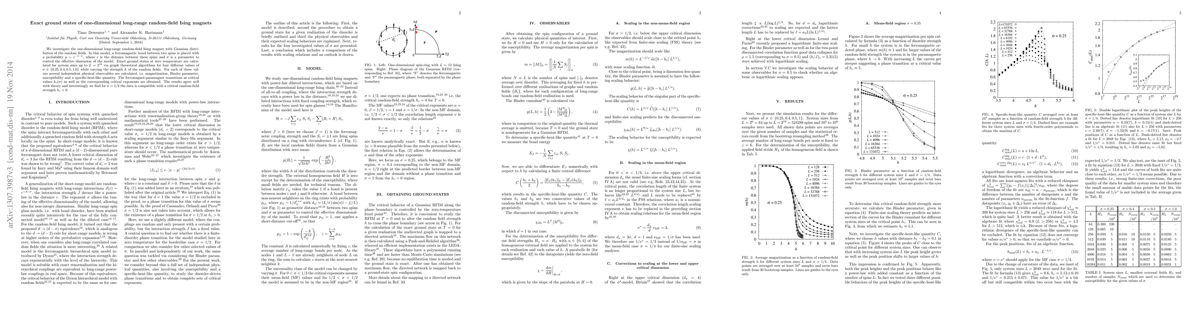 Researchers calculated exact ground states for a 1D random-field Ising magnet model with varying parameters, revealing ferromagnet-paramagnet transitions and critical exponents that agree with theory.