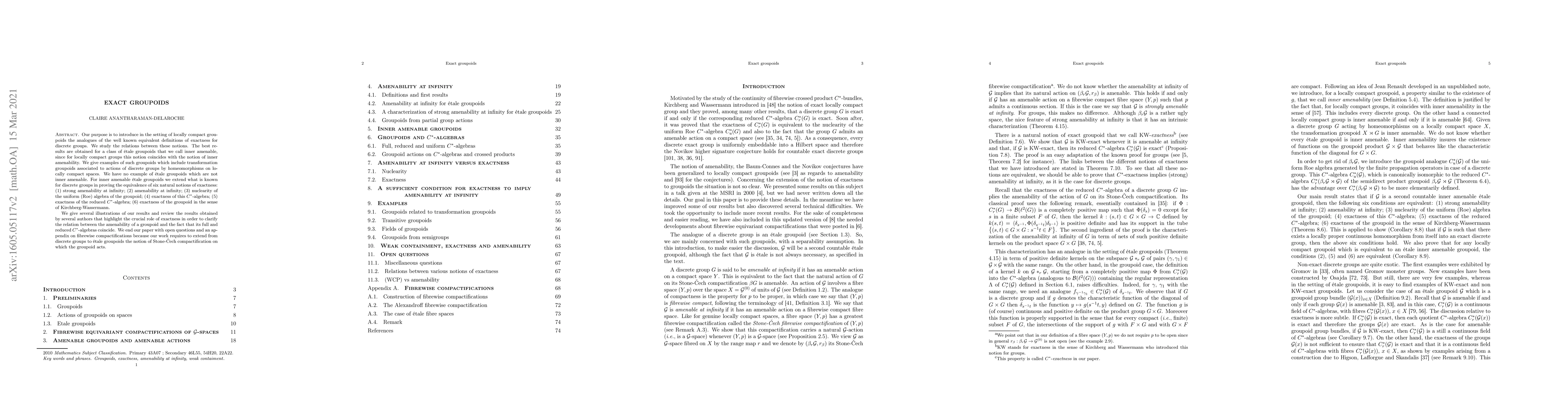 Our purpose is to introduce in the setting of locally compact groupoids the analogues of the well known equivalent definitions of exactness for discrete groups. We study the relations between these notions. The best results are obtained for a class of \'etale groupoids that we call inner amenable, since for locally compact groups this notion coincides with the notion of inner amenability. We give examples of such groupoids which include transformation groupoids associated to actions of discrete groups by homeomorphisms on locally compact spaces. We have no example of \'etale groupoids which are not inner amenable. For inner amenable \'etale groupoids we extend what is known for discrete groups in proving the equivalence of six natural notions of exactness: (1) strong amenability at infinity; (2) amenability at infinity; (3) nuclearity of the uniform (Roe) algebra of the groupoid; (4) exactness of this $C^*$-algebra; (5) exactness of the reduced $C^*$-algebra; (6) exactness of the groupoid in the sense of Kirchberg-Wassermann. We give several illustrations of our results and review the results obtained by several authors that highlight the crucial role of exactness in order to clarify the relation between the amenability of a groupoid and the fact that its full and reduced $C^*$-algebras coincide. We end our paper with open questions and an appendix on fibrewise compactifications because our work requires to extend from discrete groups to \'etale groupoids the notion of Stone-Cech compactification on which the groupoid acts.