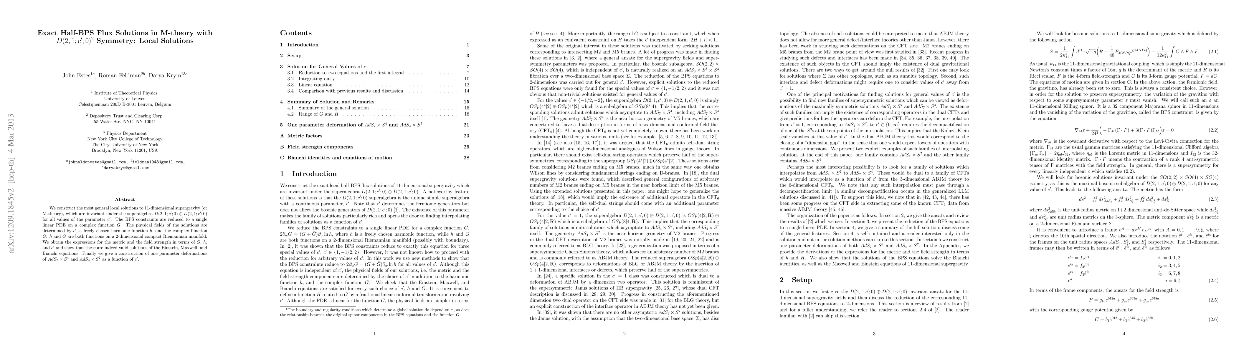 This paper constructs local solutions to M-theory invariant under the $D(2, 1; c'; 0)$ superalgebra, solving a single linear PDE for a complex function $G$ and determining physical fields via $c'$, a harmonic function $h$, and $G$. It provides expressions for the metric and field strength, confirming their validity as solutions to the Einstein, Maxwell, and Bianchi equations.
