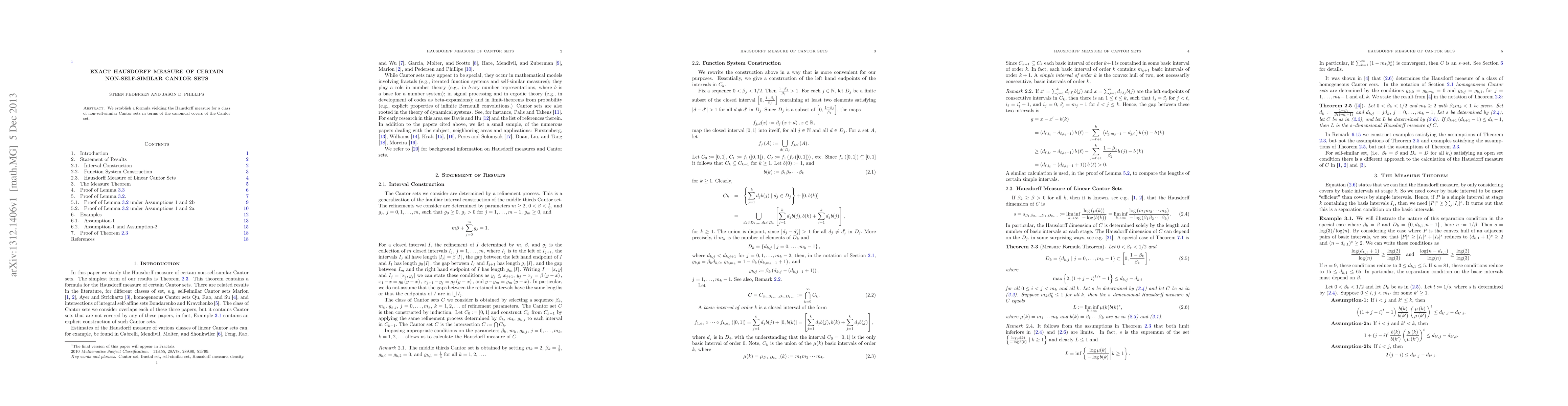 This paper provides a formula for calculating the exact Hausdorff measure of specific non-self-similar Cantor sets using their canonical covers. The result contributes to understanding the geometric properties of these sets.
