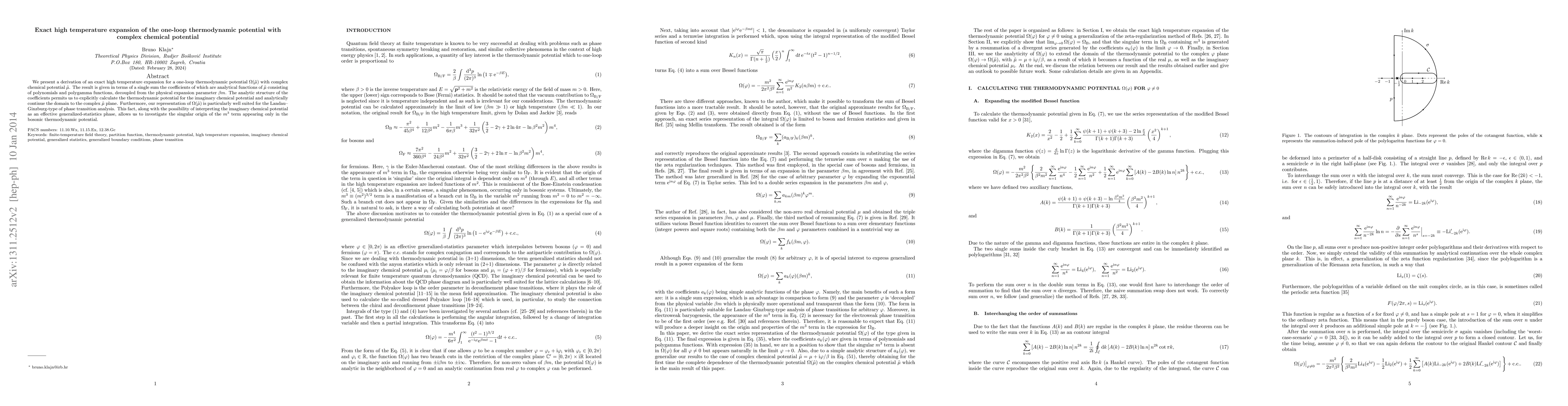 Researchers derived an exact high-temperature expansion for a thermodynamic potential with complex chemical potential, enabling analytical calculations and phase transition analysis. The representation is well-suited for studying singular origins of terms in bosonic thermodynamic potentials.
