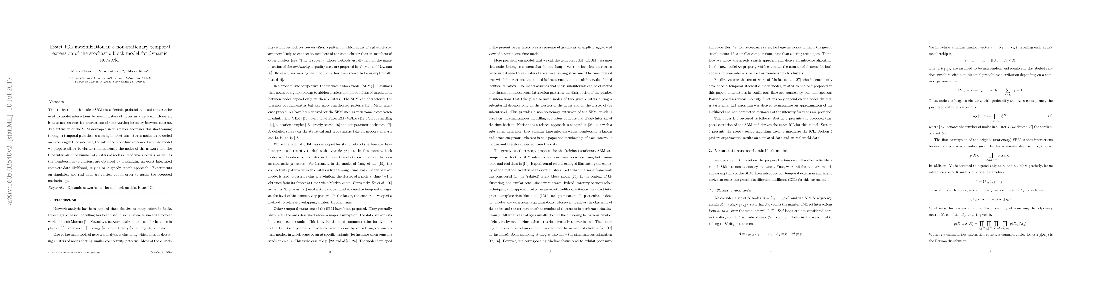 This paper extends the stochastic block model to a non-stationary temporal framework, allowing for dynamic clustering of both nodes and time intervals based on varying interaction intensities. An exact integrated complete-data likelihood maximization, using a greedy search, is employed to determine the optimal number and membership of clusters, validated through experiments on both simulated and real data.