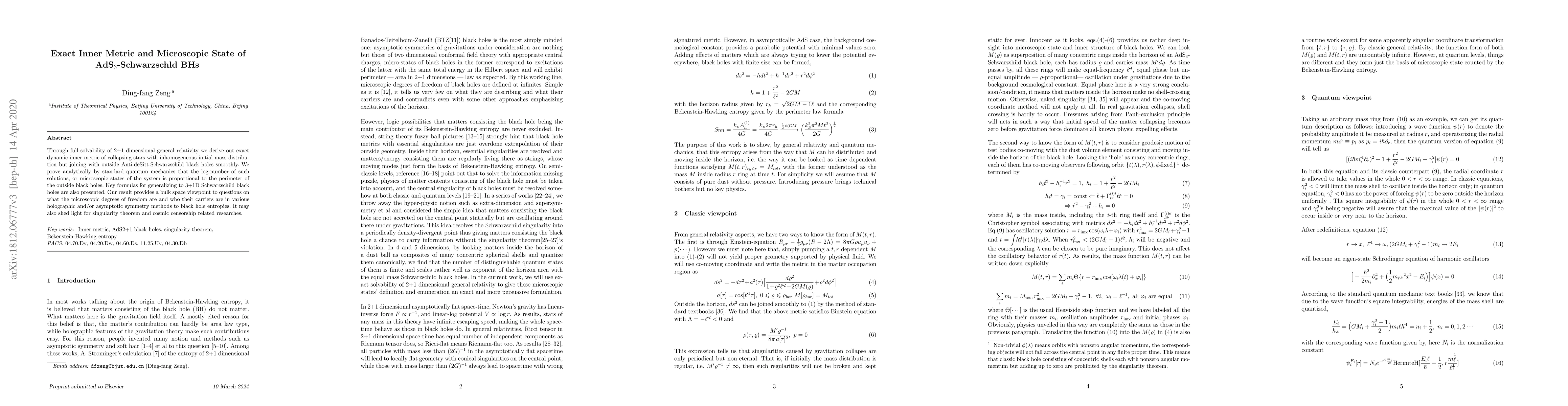 Through full solvability of 2+1 dimensional general relativity we derive out exact dynamic inner metric of collapsing stars with inhomogeneous initial mass distribution but joining with outside Anti-deSitt-Schwarzschild black holes smoothly. We prove analytically by standard quantum mechanics that the log-number of such solutions, or microscopic states of the system is proportional to the perimeter of the outside black holes. Key formulas for generalizing to 3+1D Schwarzschild black holes are also presented. Our result provides a bulk space viewpoint to questions on what the microscopic degrees of freedom are and who their carriers are in various holographic and/or asymptotic symmetry methods to black hole entropies. It may also shed light for singularity theorem and cosmic censorship related researches.