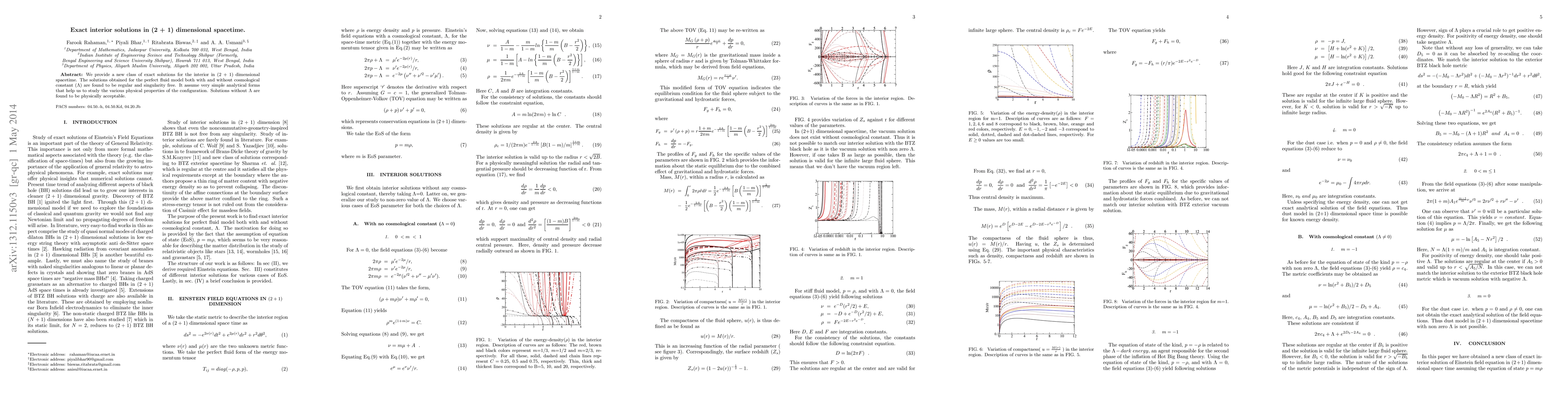 We provide a new class of exact solutions for the interior in (2 + 1) dimensional spacetime. The solutions obtained for the perfect fluid model both with and without cosmological constant ($\Lambda$) are found to be regular and singularity free. It assume very simple analytical forms that help us to study the various physical properties of the configuration. Solutions without $\Lambda$ are found to be physically acceptable.