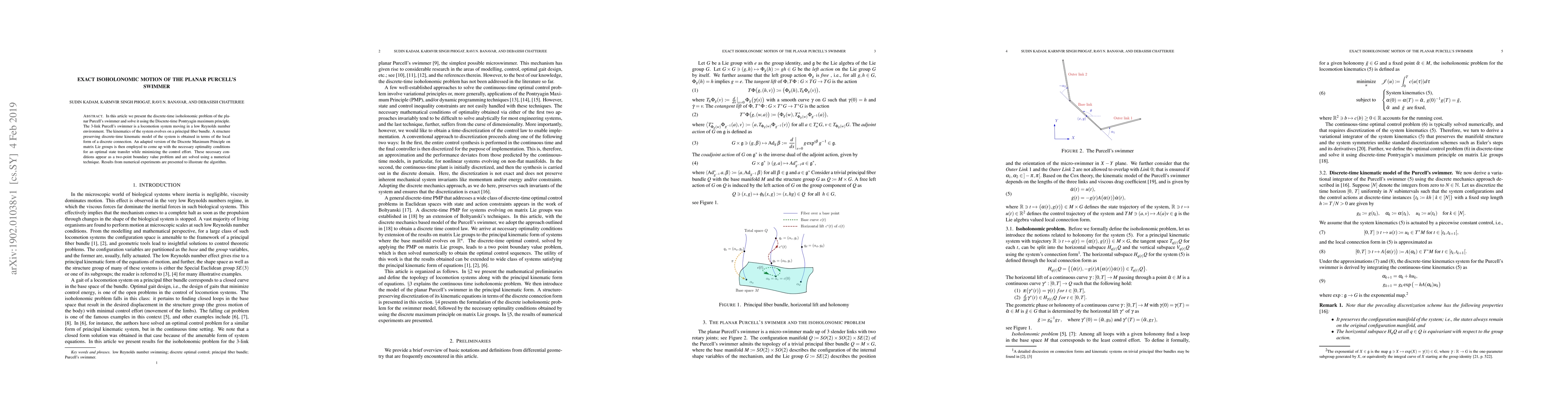 In this article we present the discrete-time isoholonomic problem of the planar Purcell's swimmer and solve it using the Discrete-time Pontryagin maximum principle. The 3-link Purcell's swimmer is a locomotion system moving in a low Reynolds number environment. The kinematics of the system evolves on a principal fiber bundle. A structure preserving discrete-time kinematic model of the system is obtained in terms of the local form of a discrete connection. An adapted version of the Discrete Maximum Principle on matrix Lie groups is then employed to come up with the necessary optimality conditions for an optimal state transfer while minimizing the control effort. These necessary conditions appear as a two-point boundary value problem and are solved using a numerical technique. Results from numerical experiments are presented to illustrate the algorithm.