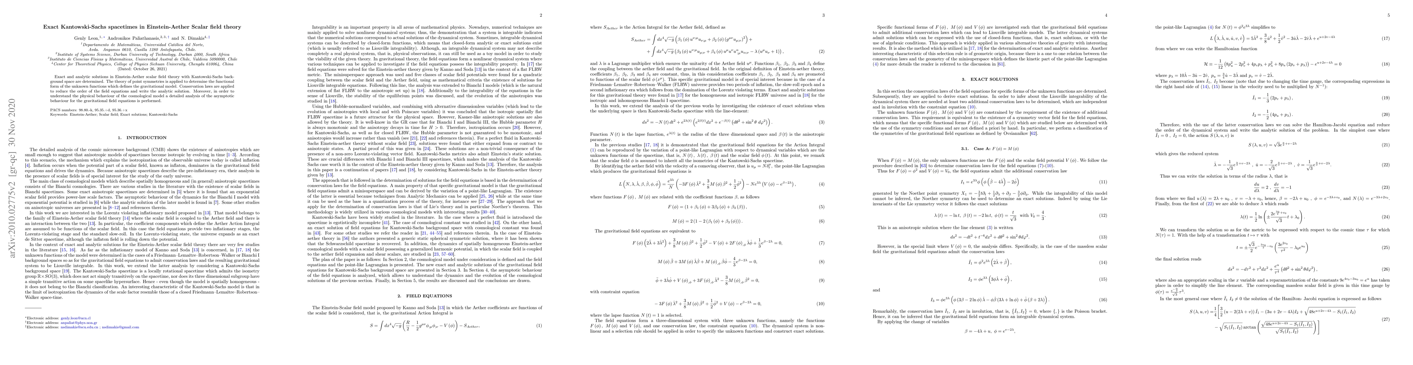 This paper determines exact solutions in Einstein-Aether scalar field theory with a Kantowski-Sachs background, utilizing point symmetries and conservation laws to find the functional form of the model. It also analyzes the asymptotic behavior to understand the physical implications of the cosmological model.