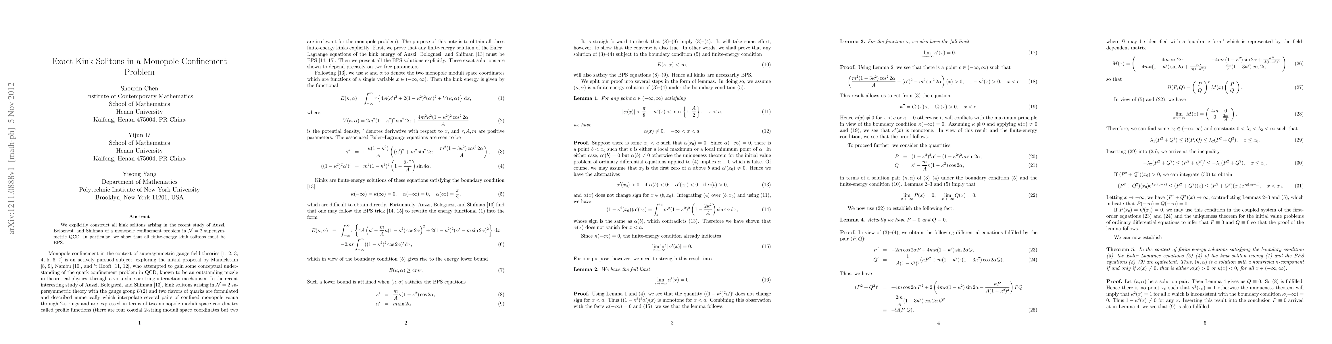 We explicitly construct all kink solitons arising in the recent study of Auzzi, Bolognesi, and Shifman of a monopole confinement problem in ${\cal N}=2$ supersymmetric QCD. In particular, we show that all finite-energy kink solitons must be BPS.