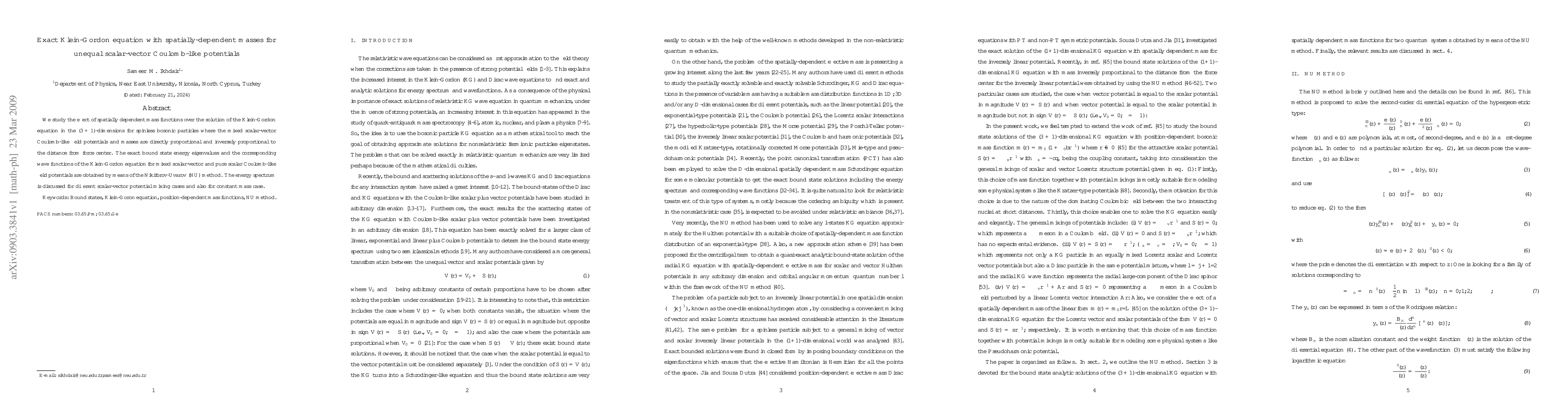 We study the effect of spatially dependent mass functions over the solution of the Klein-Gordon equation in the (3+1)-dimensions for spinless bosonic particles where the mixed scalar-vector Coulomb-like field potentials and masses are directly proportional and inversely proportional to the distance from force center. The exact bound state energy eigenvalues and the corresponding wave functions of the Klein-Gordon equation for mixed scalar-vector and pure scalar Coulomb-like field potentials are obtained by means of the Nikiforov-Uvarov (NU) method. The energy spectrum is discussed for different scalar-vector potential mixing cases and also for constant mass case.