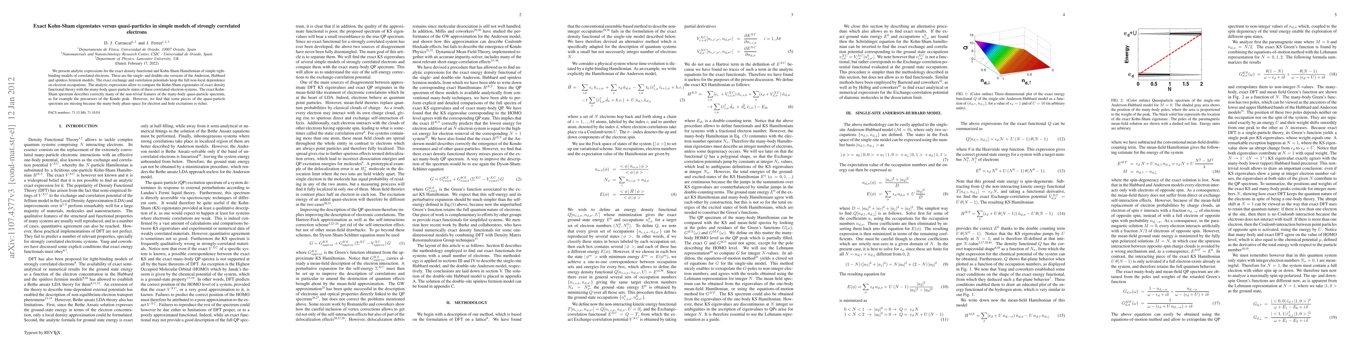 This paper provides analytic expressions for the exact density functional and Kohn-Sham Hamiltonian in simple models of strongly correlated electrons, comparing the Kohn-Sham eigenstates with many-body quasi-particle states. It finds that while the Kohn-Sham spectrum accurately captures many features of the quasi-particle spectrum, it lacks some aspects due to the richer many-body phase-space.