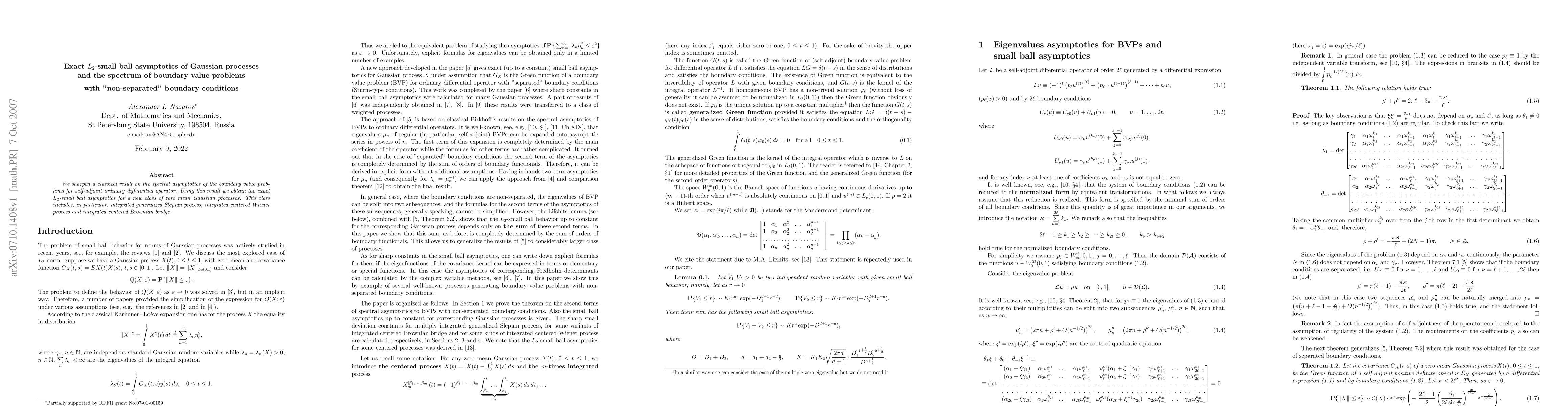 This paper refines classical spectral asymptotics for boundary value problems with non-separated boundary conditions, leading to precise $L_2$-small ball asymptotics for a novel class of zero-mean Gaussian processes, including integrated Slepian, Wiener, and Brownian bridge processes.
