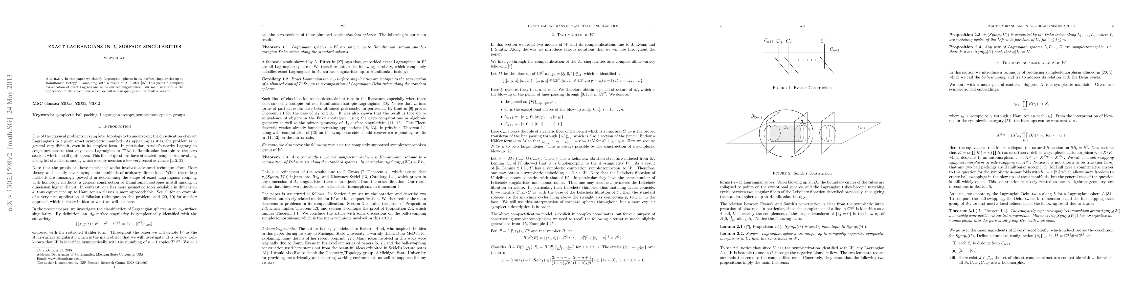 This paper classifies Lagrangian spheres in $A_n$-surface singularities up to Hamiltonian isotopy, completing a classification of exact Lagrangians in these singularities when combined with A. Ritter's result.