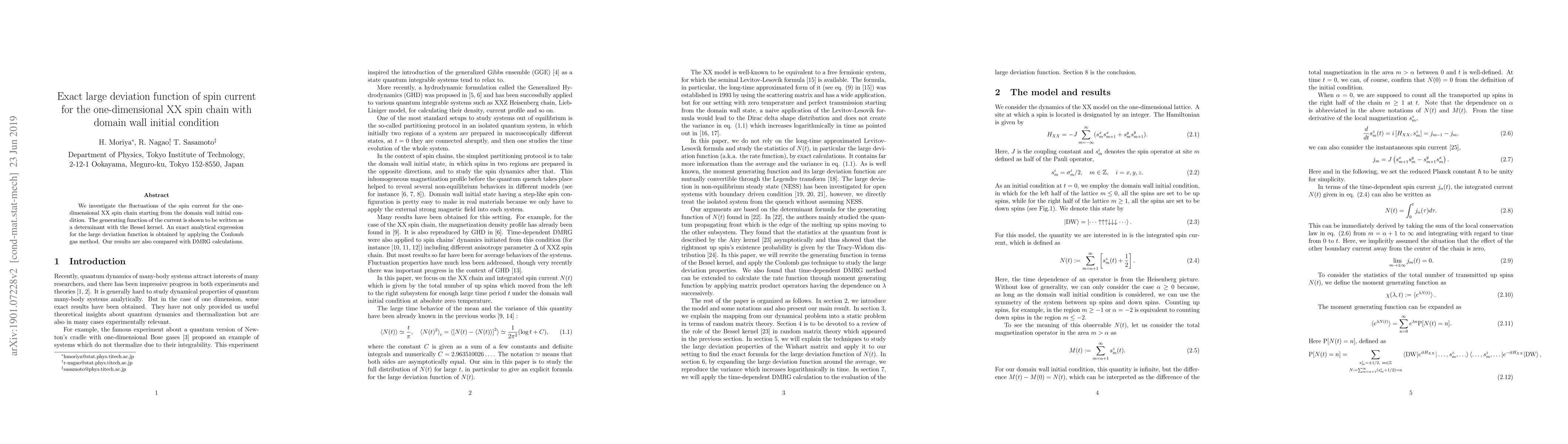 Researchers studied the fluctuations of spin current in a one-dimensional XX spin chain with an initial domain wall condition, finding an exact analytical expression for its large deviation function using the Coulomb gas method.