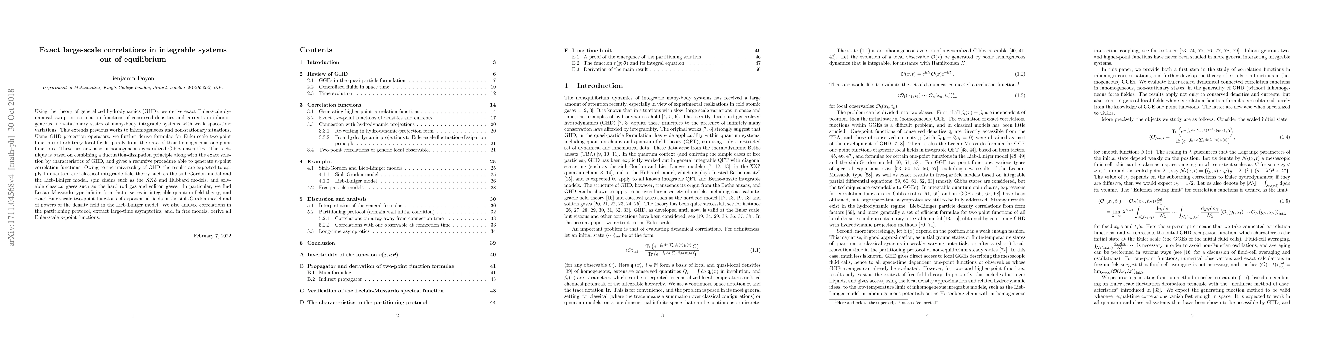 This paper develops exact Euler-scale two-point correlation functions for conserved densities and currents in non-stationary, inhomogeneous states of integrable systems using generalized hydrodynamics. The findings apply universally across various quantum and classical integrable field theories, revealing new infinite form-factor series and exact correlation functions for specific models.