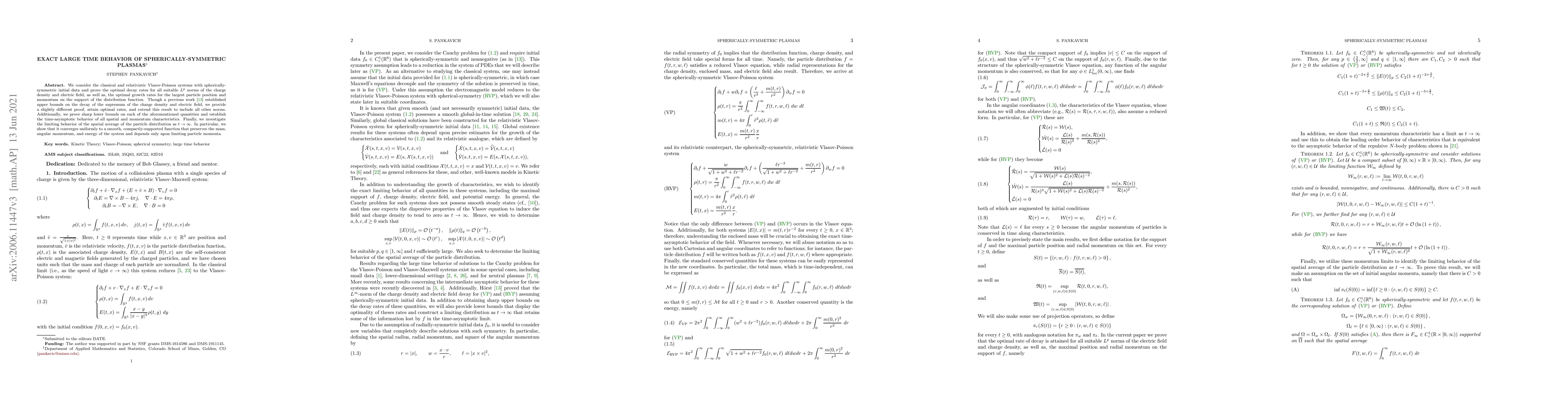 We consider the classical and relativistic Vlasov-Poisson systems with spherically-symmetric initial data and prove the optimal decay rates for all suitable $L^p$ norms of the charge density and electric field, as well as, the optimal growth rates for the largest particle position and momentum on the support of the distribution function. Though a previous work \cite{Horst} established upper bounds on the decay of the supremum of the charge density and electric field, we provide a slightly different proof, attain optimal rates, and extend this result to include all other norms. Additionally, we prove sharp lower bounds on each of the aforementioned quantities and establish the time-asymptotic behavior of all spatial and momentum characteristics. Finally, we investigate the limiting behavior of the spatial average of the particle distribution as $t \to \infty$. In particular, we show that it converges uniformly to a smooth, compactly-supported function that preserves the mass, angular momentum, and energy of the system and depends only upon limiting particle momenta.