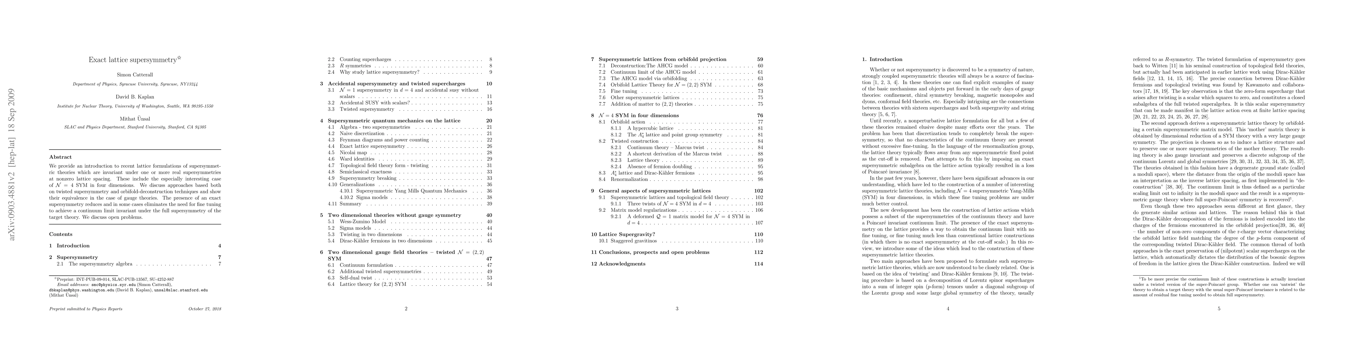 This paper introduces lattice formulations of supersymmetric theories that maintain exact supersymmetry at nonzero lattice spacing, focusing on ${\cal N}=4$ SYM in four dimensions. It explores methods using twisted supersymmetry and orbifold-deconstruction, highlighting their equivalence and the benefits of exact supersymmetry in reducing fine-tuning needs for continuum limits.