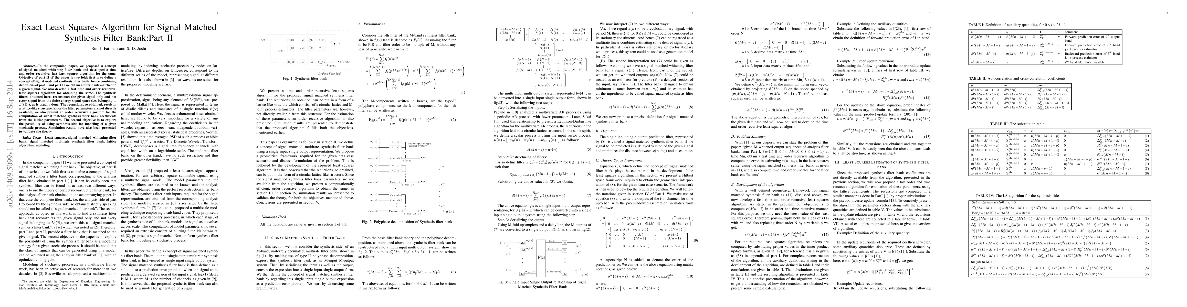 In the companion paper, we proposed a concept of signal matched whitening filter bank and developed a time and order recursive, fast least squares algorithm for the same. Objective of part II of the paper is two fold: first is to define a concept of signal matched synthesis filter bank, hence combining definitions of part I and part II we obtain a filter bank matched to a given signal. We also develop a fast time and order recursive, least squares algorithm for obtaining the same. The synthesis filters, obtained here, reconstruct the given signal only and not every signal from the finite energy signal space (i.e. belonging to L^2(R)), as is usually done. The recursions, so obtained, result in a lattice-like structure. Since the filter parameters are not directly available, we also present an order recursive algorithm for the computation of signal matched synthesis filter bank coefficients from the lattice parameters. The second objective is to explore the possibility of using synthesis side for modeling of a given stochastic process. Simulation results have also been presented to validate the theory.