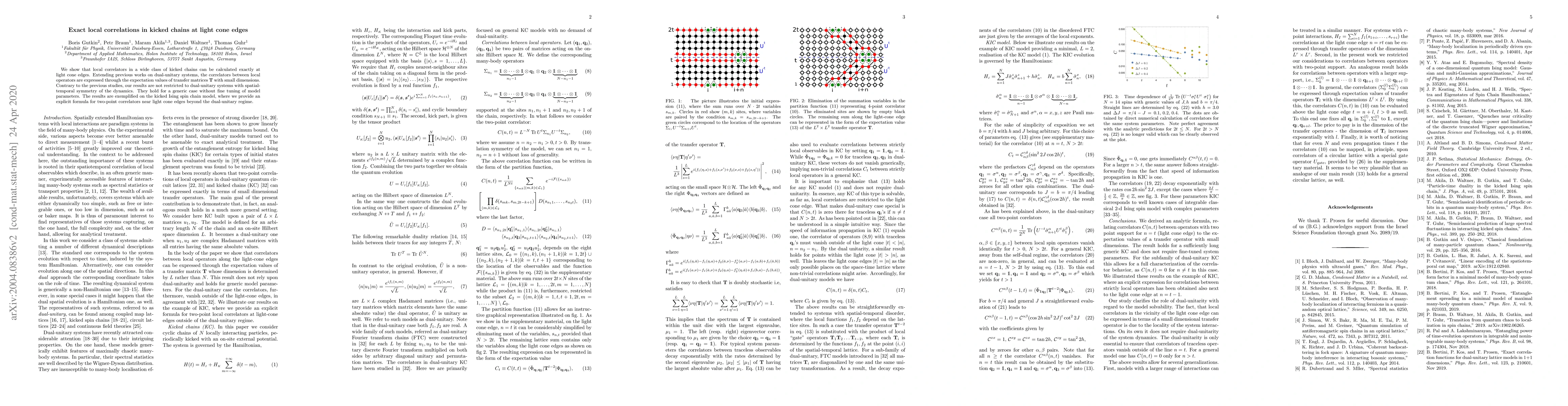 Researchers have found a way to exactly calculate local correlations in a wide class of kicked chains at light cone edges, breaking previous constraints on dual-unitary systems, and applied this method to the kicked Ising spin chain model.