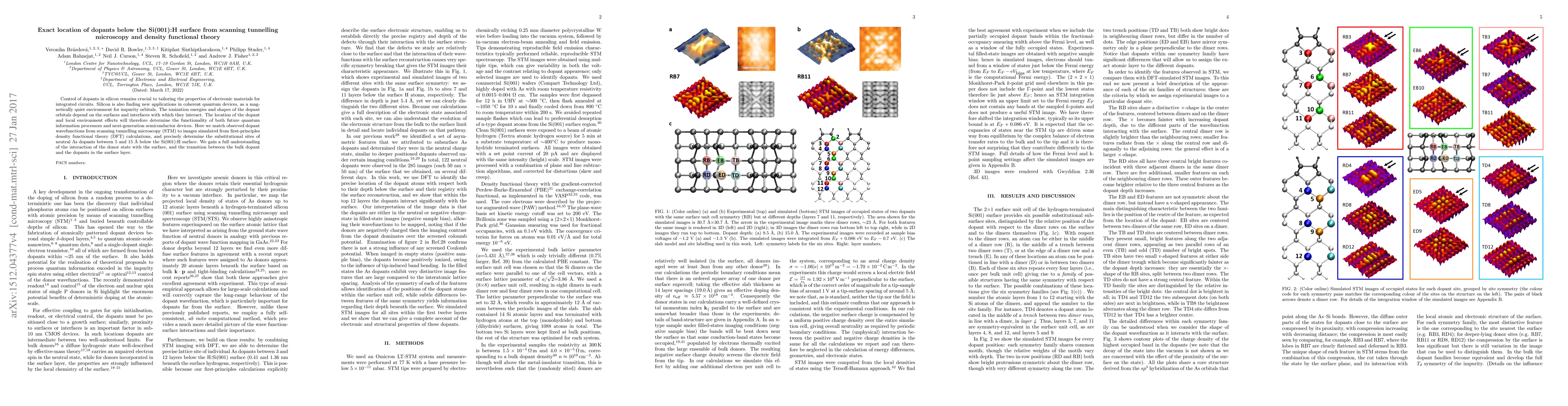 Control of dopants in silicon remains the most important approach to tailoring the properties of electronic materials for integrated circuits, with Group V impurities the most important n-type dopants. At the same time, silicon is finding new applications in coherent quantum devices, thanks to the magnetically quiet environment it provides for the impurity orbitals. The ionization energies and the shape of the dopant orbitals depend on the surfaces and interfaces with which they interact. The location of the dopant and local environment effects will therefore determine the functionality of both future quantum information processors and next-generation semiconductor devices. Here we match observed dopant wavefunctions from low-temperature scanning tunnelling microscopy (STM) to images simulated from first-principles density functional theory (DFT) calculations. By this combination of experiment and theory we precisely determine the substitutional sites of neutral As dopants between 5 and 15A below the Si(001):H surface. In the process we gain a full understanding of the interaction of the donor-electron state with the surface, and hence of the transition between the bulk dopant (with its delocalised hydrogenic orbital) and the previously studied dopants in the surface layer.