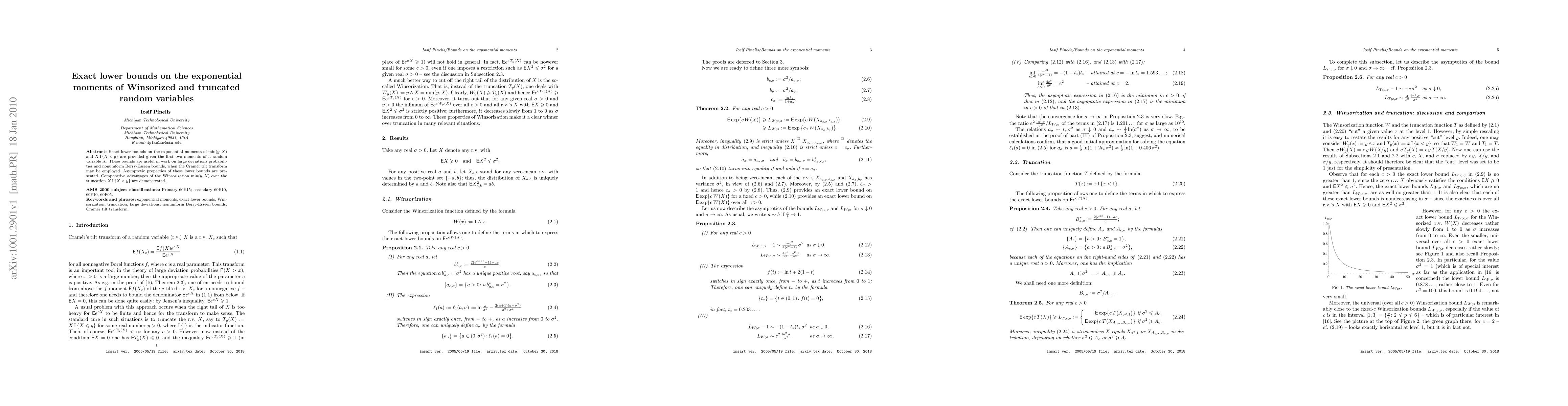 This paper provides exact lower bounds on the exponential moments of Winsorized and truncated random variables using the first two moments of X. It demonstrates the advantages of Winsorization over truncation in large deviations probabilities and nonuniform Berry-Esseen bounds.