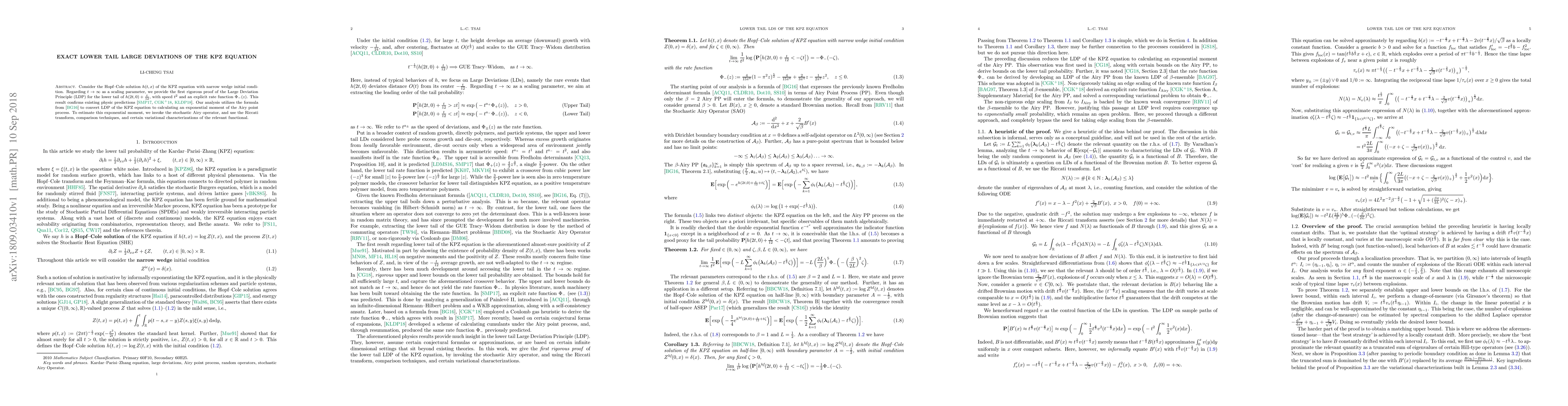 This paper rigorously proves the Large Deviation Principle for the lower tail of the solution to the KPZ equation with a narrow wedge initial condition, confirming existing physical predictions. The analysis employs the formula from Borodin and Gorin to convert the problem into calculating an exponential moment of the Airy point process, using the stochastic Airy operator and advanced mathematical techniques.