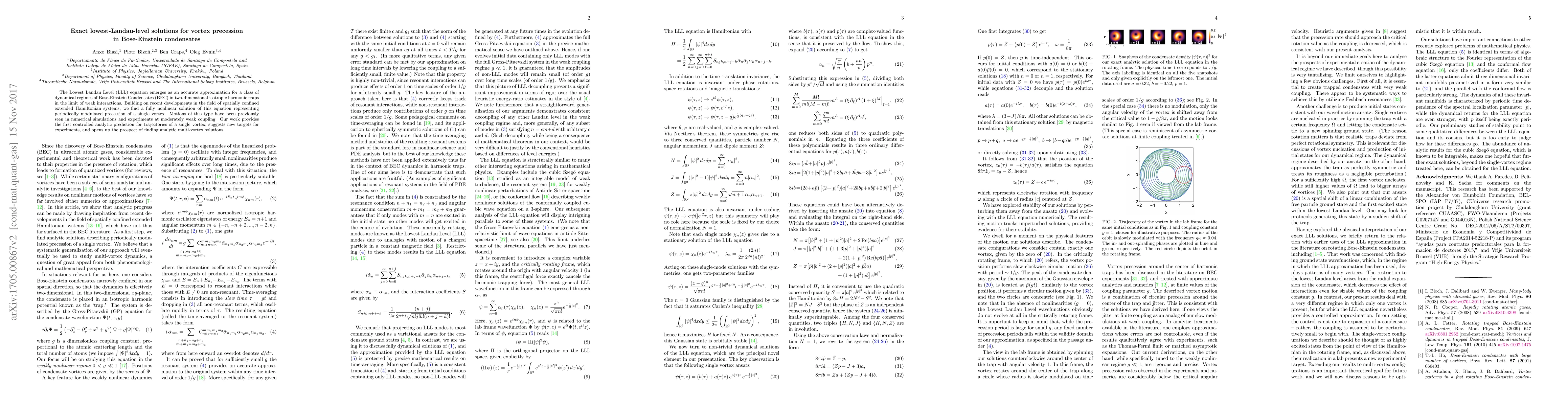 This paper presents the exact analytic solution of the Lowest Landau Level equation for a single vortex in a two-dimensional Bose-Einstein condensate, revealing periodic vortex precession. This provides the first controlled analytical prediction for vortex trajectories and suggests new experimental targets.
